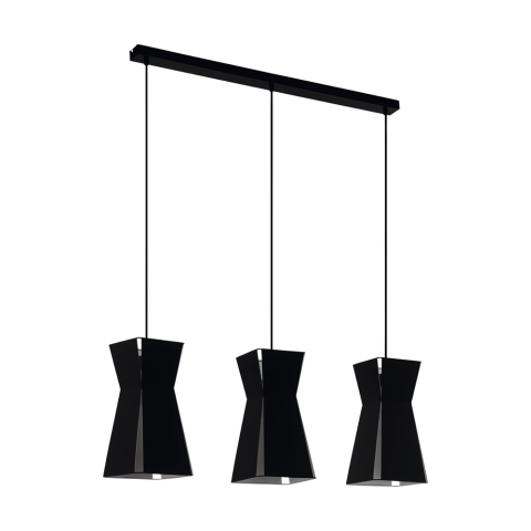 A Valecrosia Eglo 99083 függesztett lámpa három darab E27-es foglalattal rendelkezik, így többféle cserélhető fényforrással kompatibilis. A lámpatest fő anyaga acél, amely fekete-fehér színkombinációval készült, vintage stílusban. A termék teljes hossza 8