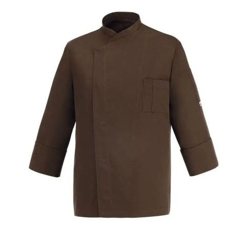 1 kép egochef Szakácskabát - csokoládébarna, hosszú ujjú, rejtett patentos, karcsúsított