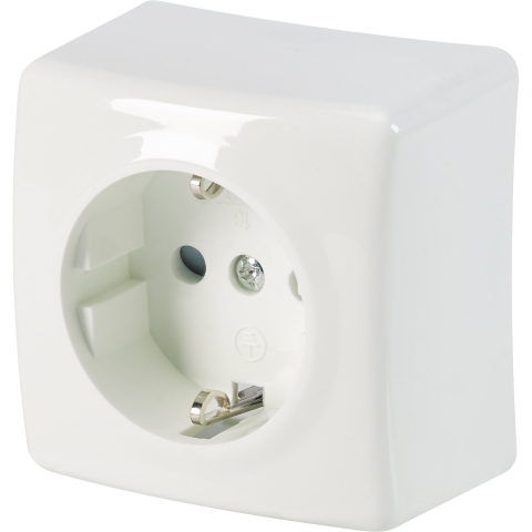 A krémfehér csatlakozóaljzat beltéri falon kívüli szerelésre alkalmas, és legfeljebb 2,5 mm2 keresztmetszetű vezetékekhez használható. A speciális műanyagból készült, egyenes vonalakkal rendelkező, tetszetős formájú ház a lakótérben használható kapcsolócsalád közös jellemzője, minőségét a VDE ellenőrizte. Névleges feszültsége 230 V, névleges áramerőssége 16 A. Az 1 részes csatlakozóaljzat csatlakoztatása a csavaros technikával nagyon egyszerűen tör