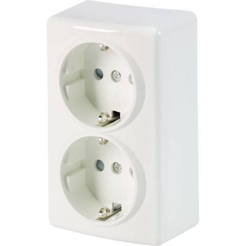 A krémfehér csatlakozóaljzat beltéri falon kívüli szerelésre alkalmas, és legfeljebb 2,5 mm2 keresztmetszetű vezetékekhez használható. A speciális műanyagból készült, egyenes vonalakkal rendelkező, tetszetős formájú ház a lakótérben használható kapcsolócsalád közös jellemzője, minőségét a VDE ellenőrizte. Névleges feszültsége 230 V, névleges áramerőssége 16 A. A 2 részes csatlakozóaljzat csatlakoztatása a csavaros technikával nagyon egyszerűen tört