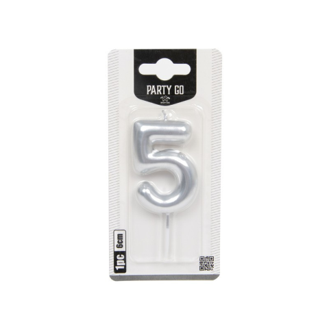 egyéb 5-s szám gyertya EZÜST 6 cm