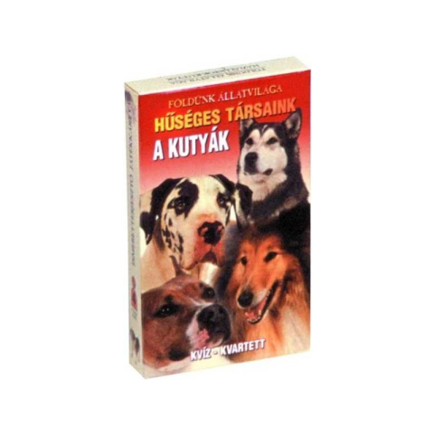 Korosztály: 3 - 6 év A kutyákEzzel a kártyajátékkal újabb ismereteket szerezhettek legkedvesebb barátaitokról, a kutyákról. Sok-sok érdekességet tudhattok meg származásukról, életmódjukról és viselkedésükről.Most bebizonyíthatod, mennyire ismered a hűséges barátainkat, a kutyákat!4 azonos jelű kártyát kell összegyűjtened, ez egy kvartett. Ha a végén neked van a