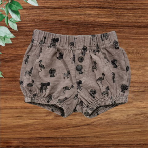 Állatkás, barna rövidnadrág Egyenes szabású, dereka gumis, elején díszgombokkal. Kellemes pamut anyag. Hibátlan állapotú.