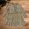 Apró virágos kisruha Egyenes szabású, eleje félig gombos, ujja vége gumis. Mutatós apró virágos anyag. Hibátlan állapotú.
