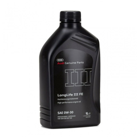 AUDI Longlife III 0W30 hosszú csereperiódusú (Longlife) gyári motorolaj, mely kimondottan az AUDI modern benzines és részecskeszűrővel szerelt dízel motorokjaihoz került kijlesztésre. Specifikációk és gyártói jóváhagyások: VW 504.00 VW 507.00 SAE 0W30