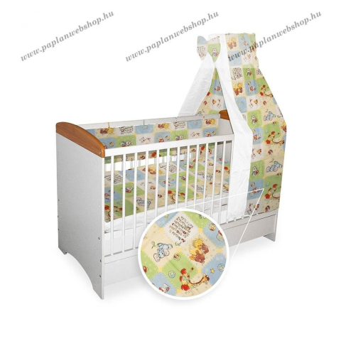 Baba 4 részes ágynemű szett: baldachinnal, rácsvédővel, paplannal és párnával. Termékjellemzők: - Baba 4 részes ágynemű szett. - Kitűnő választás ajándéknak is! - A garnitúra tartalma: 1 db paplan (90×140 cm): összetétel: töltet 100% poliészter, borít