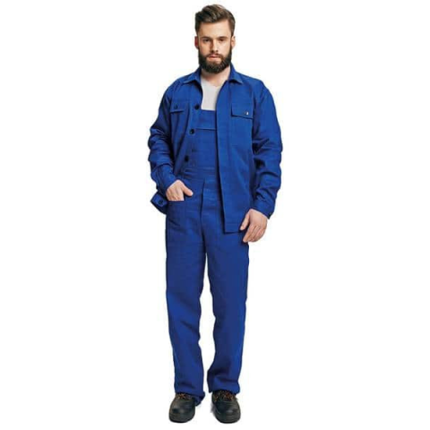 RALF öltöny mellesnadrággal royalkék 58 • munkakabát és mellesnadrág • gombbal záródó kabát 2 mellzseb gomboshajtókával • 2 zseb gombos hajtókával • mellesnadrág 2 első zsebbel, 1 mellzsebbel és 1 extra oldalzsebbel a colstoknak • 100 % pamut, 240 g/m²