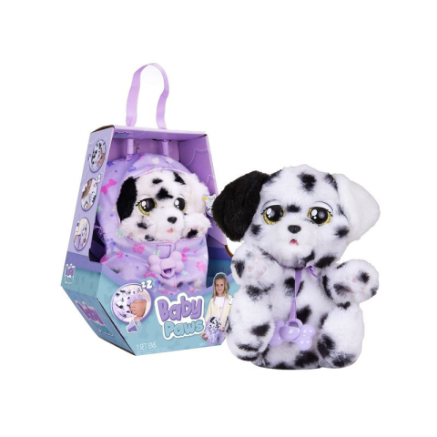 Korosztály: 3 - 10 év Bébi Mancs Dalmata A Baby Paws Dalmatian egy aranyos, fekete-fehér pöttyös kutyus, szuper puha szőrrel, így teljesen úgy néz ki, mint egy igazi kutya! A dalmata csodálatosan alszik egy lila takaróban, cumival a szájában és csukott szemével. Nyissa ki a takarót, és fedezze fel a puha, rugalmas testet mozgatható lábakkal. Amint kiveszed a cumit a szádbó