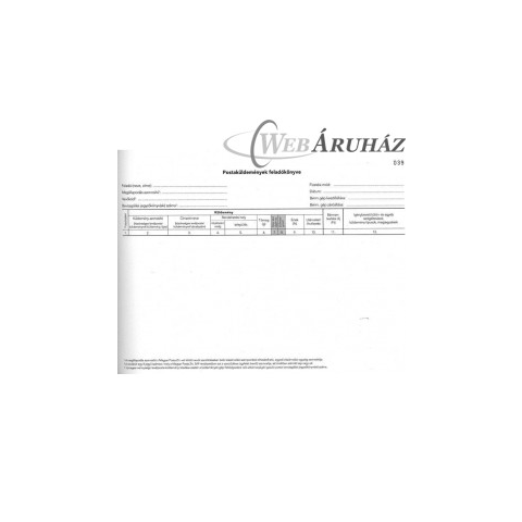 EGYEB BELFOLDI "Postaküldemények feladókönyve 150 lap"