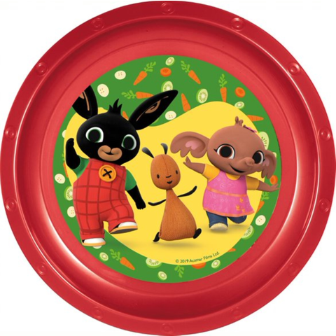 Bing nyuszi mintás műanyag lapostányérSzínes étkezés Bing nyuszival – Piros műanyag lapostányér gyerekeknek!