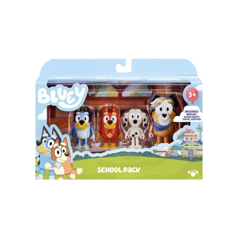 Korosztály: 3 - 14 év Bluey Iskolaszett 4dbIsmerd meg a Bluey Iskolás figuraszettet, amely négy kedvelt karaktert hoz el közvetlenül a népszerű animációs sorozatból a gyerekszobába! A csomagban található Rusty, a vörös pásztorkutya, aki krikettütőjével kivételes képességeket mutat be, Chloe, aki szuper kedves és Bluey egyik legjobb barátja, Calypso, az ausztrál pásztor