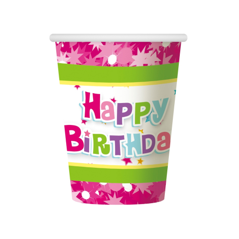 egyéb Boldog születésnapot papír pohár 250 ml - Rózsaszín (6 db)