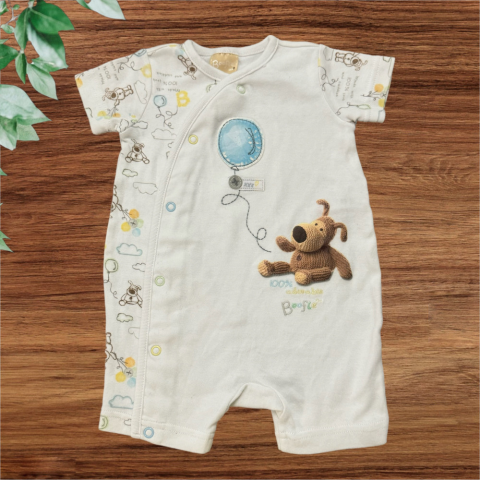 Boofle kutyás napozó Egyenes szabású, kerek nyakkivágású, eleje végig patentos. A lufi részén kopottab a matrica. Kellemes pamut anyag. Szép állapotú.