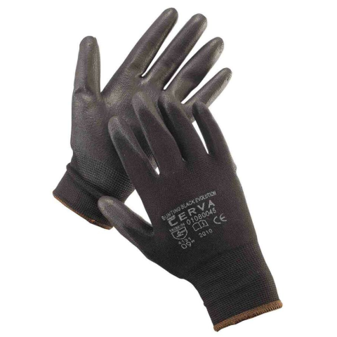 BUNTING EVOLUTION BLACK kesztyű PU - 11 • kötött, varratmentes PES kesztyű • vékony PU mártás a tenyéren és az ujjakon • rugalmas mandzsetta