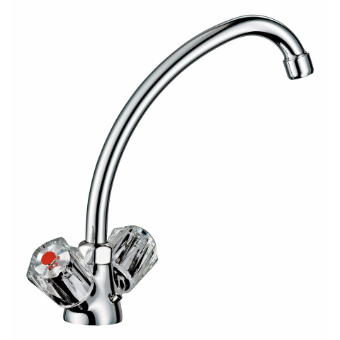 A Ledro termékcsalád kétkaros konyhai csaptelepével a hideg és a meleg víz külön szabályozható. A krómozott, sárgaréz csaptelep klasszikus és egyszerű megjelenésű, és minden berendezési stílushoz illik. Kiváló minőségű perlátorral és bevizsgált zsírzókamrás felsőrészekkel van ellátva. A szükséges csatlakozótömlők megfelelnek a hatályos ivóvízrendeletnek, és a termékhez vannak mellékelve. A kétkaros csaptelep mosogatóra való felszerelésre alkalmas.