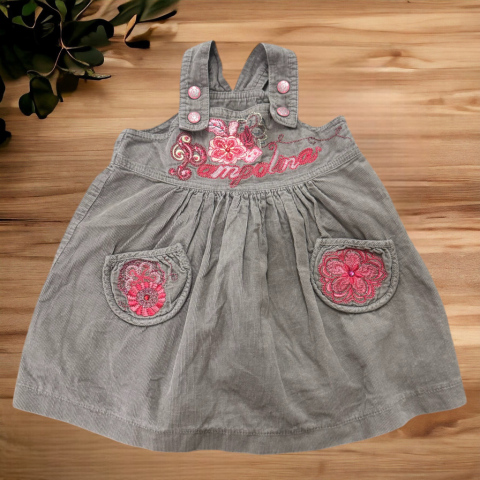 Csinos, barna kordruha Bőszabású, oldala cipzáros, vállpántja patentos. Kellemes kord anyag, alsó szoknyás, elején hímzett mintákkal és zsebbel. Hibátlan állapotú.