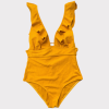 Csinos mustársárga fürdőruha Vállpántja fodros, dekoltázsnál szivacsos, háta fűzős. Hibátlan állapotú.