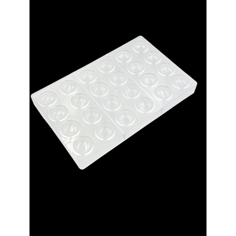 Csokoládé bonbon forma, polikarbonát, félgömb, 17×27cm, 24db Ez a polikarbonátból készült csokoládé bonbon forma 17 × 27 cm méretű, és lehetővé teszi 24 db ínycsiklandó félgömb alakú bonbon elkészítését. Minden félgömb átmérője 3,2 cm, így tökéletes ét
