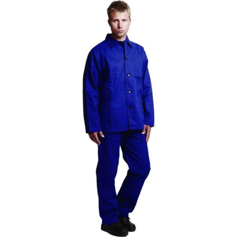 Nadrág és dzseki.Anyaga: 100% pamut, 240 g/m?Gombos kabát, összesen 3 zseb, megerősített könyék és húzózsinóros derék.