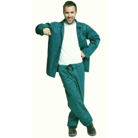 Nadrág és dzseki.Anyaga: 100% pamut, 240 g/m?Gombos kabát, összesen 3 zseb, megerősített könyék és húzózsinóros derék.