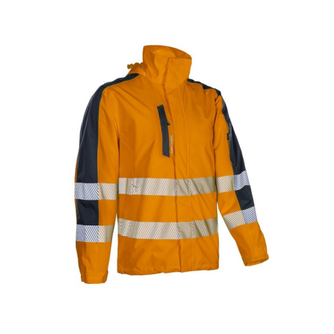 100 g/m2 vastag 2 rétegű Softshell alapanyag: 100% mechanikus stretch poliészter + TPU membrán100% poliészter hálós bélés a testen ás a karokon ás 55 g/m2 vastag 100% poliészter tafeta bélés a kapucniban és a zsebeknél5 cm széles szegmentált fényvissz