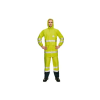 jólláthatósági esőkabát csuklyával, patentokkal, T ujjú szabás, fényvisszavető csíkokcombközépig érőaz antisztatikus védelmi képesség csak antisztatikus nadrággal viselve érvényesüleső elleni védelmet nyújt, véd vízpermetben, lecsurgó, csepegő vízben, vagy vízzel, illetve nem veszélyes folyadékokkal végzett munkánál