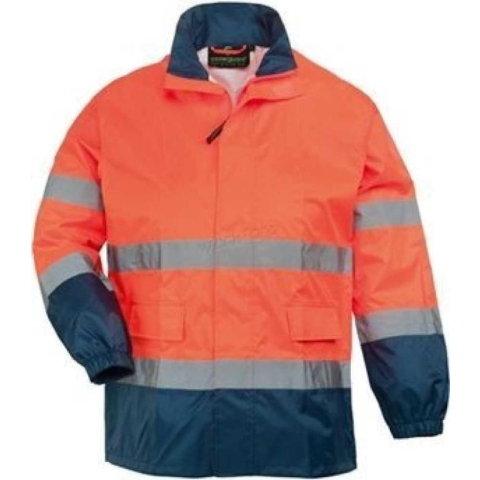 HI-WAY SZELLOZO PE/PU FLUO NARANCS/SÖTÉTKÉK ESORUHA:180 g/m? lélegző (páraáteresztő képesség: 2000 mvp) poliuretánnal bevont, vízhatlan (vízállóság: 2000 mm) Oxford poliészter5 cm széles fényvisszaverő csíkok, hegesztett biztonsági varratokkabát: végig cipzáras álló gallér, rejtett kapucni, két oldalzseb, állítható aljnadrág: gumírozott derék, szűkíthető, patentos bokarész7HWRO narancs/sötétkékméret: XXLEU szabvány: EN340, EN343 (Cl 1.2), EN ISO 20471