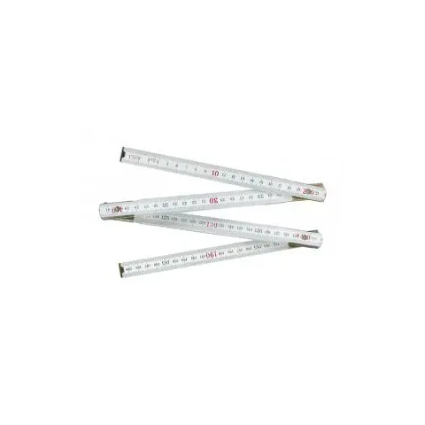 Csuklós famérce • Kemény bükkfából • Szegecselt, réz bevonatú rejtett rugós csuklókkal • Nagy kopásállóságú foltmentes és nedvességálló bevonattal • Mindkét oldalán dupla mm skálával • Minden 0 végződésű szám piros színnel • Méréspontosság: EU III osztály Legnagyobb eltérés mm-ben: +/- 0,6 + a famérce teljes hossza(m) x 0,4 (Pl.: 2m-es famérce esetén a legnagyobb eltérés +/- 1,4mm lehet)