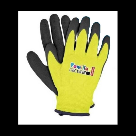1 kép egyéb FAMILIAR poliészter védőkesztyű habosított latex mártással, sárga, 12