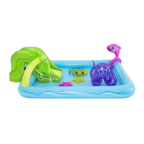 Korosztály: 2 - 6 év Fantasztikus akváriumi játékközpont2,39 m x 2,06 m x 86 cmMerülj el a nyári szórakozásban a Fantasztikus akváriumi játékközponttal, amely színes dizájnjával és tágas kialakításával garantáltan feldobja a medencés napokat! A BESTWAY márkájú vízi játékállomás tökéletes választás a kertbe vagy a strandra, ahol a pancsolás és a játék egyes