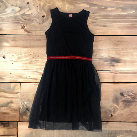 Vastagpántos, dereka gumis, alja tüllös és alsószoknyás, így nem látszik át. mell:2x42cm hossz:99cm Hibátlan állapotú.