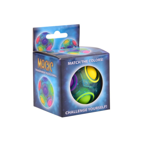 Korosztály: 3 - 14 év Félig átlátszó varázs puzzle labda Játékosok száma: 1 játékos, Korosztály: 3 éves kortól ajánlott. Ez a félig átlátszó varázs puzzle labda gyermekei kedvence lesz. Ez egy nagyszerű stresszoldó játék, és serkenti gyermekei gondolkodását. A labdán kis lyukak és speciális többszínű golyók vannak, amelyeknek a megfelelő lyukakba kell