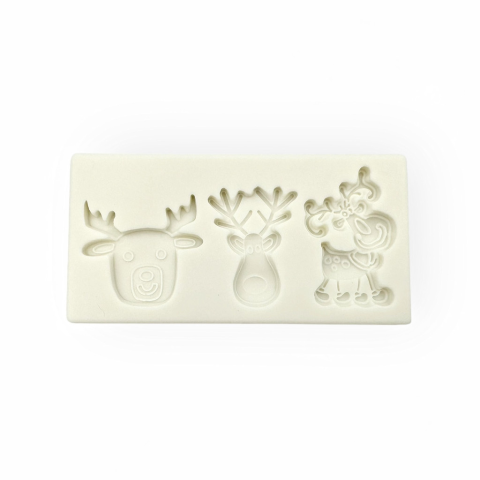 Fondant forma, szilikon, rénszarvas, 9,2×4,5 cm Ez a szilikon forma rénszarvas alakú díszek készítésére szolgál. A forma mérete 9,2 x 4,5 cm. A rénszarvasfej mérete 3,4 x 3 cm, a második forma mérete 3,4 x 2,5 cm, míg a harmadik forma 2,5 x 4 cm. Ideál