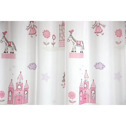 Fehér színű dekoranyag hercegnős mintákkal. Sokféle felhasználási lehetőséget kínál, bármilyen formában a lánykaszoba dísze lehet. A függönyt az áruházban az Ön által kívánt méretre vágják.