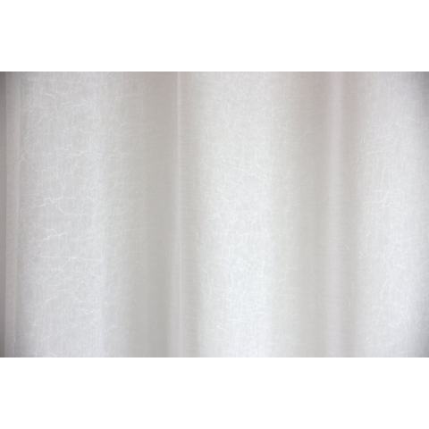 Gyűrt felületű voile függöny fehér színben. Természetes színének köszönhetően bármely beltérbe kellemes hangulatot varázsol és bármilyen színű sötétítőfüggönnyel jól kombinálható. A függönyt az áruházban az Ön által kívánt méretre vágják.