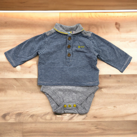 Nyaknál gombos, galléros, dupla anyag hozzá varrt felső résszel. Kellemes pamut anyag, ülepnél patentos. mell:2x24cm váll-ülep:3cm ujj:23cm Hibátlan állapotú.