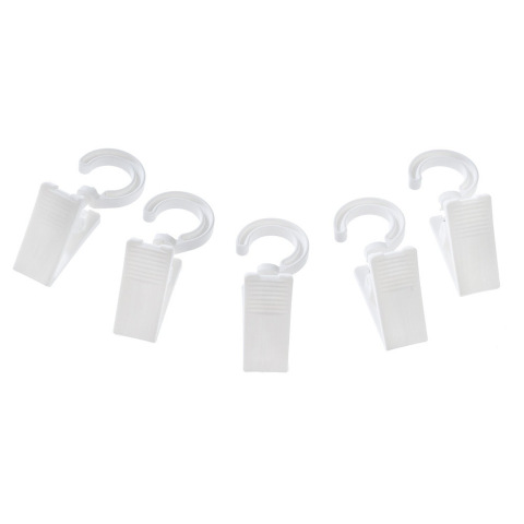 A műanyag akasztó csipesszel 28 mm-es fa garnitúra karikájához való, fehér színű termék.
