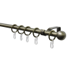 20 mm-es függönyrúdhoz való komplett fém karnisgarnitúra. A csomag tartalmazza a tartókat, karikákat, akasztókat, és a végfejeket.