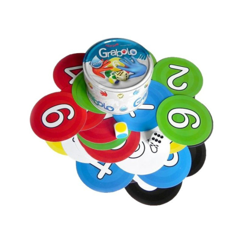 Korosztály: 6 - 10 év Grabolo társasjátékJátékosok száma: 3-5 játékos,Korosztály: 6 éves kortól ajánlott,Játékidő: kb. 8-10 perc.Figyelem, reflex, koncentráció, memória! Izgalmas új társasjáték! Bizonyítsd be, hogy az asz-talnál ülők közül neked van a legjobb szemed és a leggyorsabb kezed! A dobókockákkal dob-va kapott szín- és számkombinációkra a játékoso