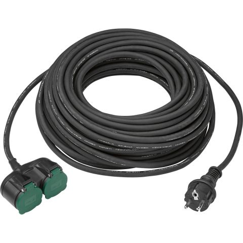 Ez a 2 csatlakozóval ellátott gumi hosszabbító elektromos gépek rugalmas használatát teszi lehetővé. Különböző háztartási gépek két tápkábelének meghosszabbítására szolgál, így nagy távolságok is áthidalhatók. Visszafogott fekete színű, teljes hossza 20 m. IP44 védelmi osztályának köszönhetően a hosszabbító különösen alkalmas kültéri használatra. Névleges teljesítménye 3500 W, névleges feszültsége 230 V, névleges áramerőssége 16 A. A H07RN-F