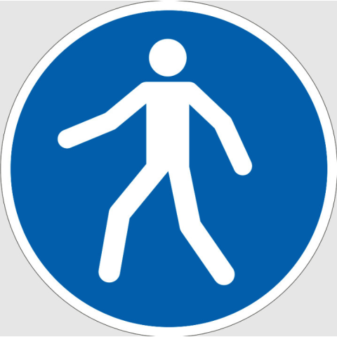 1 kép egyéb Gyalogosok részére! matrica / padlójelölő (ISO 7010-M024 piktogram) vinil öntapadó 100x100mm