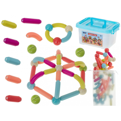 MÁGNESES BLOKKOK KISGYERMEKEKNEK 56 ELEMES Építsünk együtt! Színes blokkok mágneses elemekkel, amelyek biztosítják, hogy minden létrehozott szerkezet ne omoljon össze! A blokkok strapabíró, sima műanyagból készültek, ami garantálja, hogy a gyermek sok