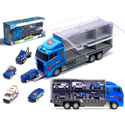 Leírás TEHERAUTÓ + RENDŐRSÉGI AUTÓK Egy nagy kék teherautó, amely lehetővé teszi a hozzá csatlakoztatott kisautók biztonságos szállítását. Bankrablás? Baleset? Veszélyes bűnöző szökött meg a börtönből? Úton vannak a rendőrök! Olyan járműveik va