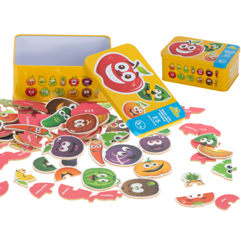 EGYÉB GYÁRTÓ Puzzle Games Fruit 25 - gyümölcsös kirakójáték fém dobozban, Többszínű puzzle, kirakós termékleírás