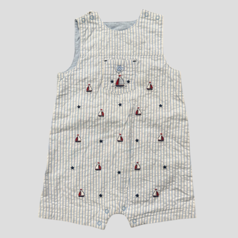 Hajó mintás napozó Egyenes szabású, kerek nyakú, ülepnél és vállnál patentos. Hibátlan állapotú.