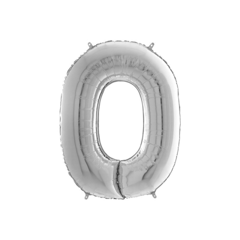 egyéb Héliumos fólia lufi, 0-as szám, 65 cm, ezüst