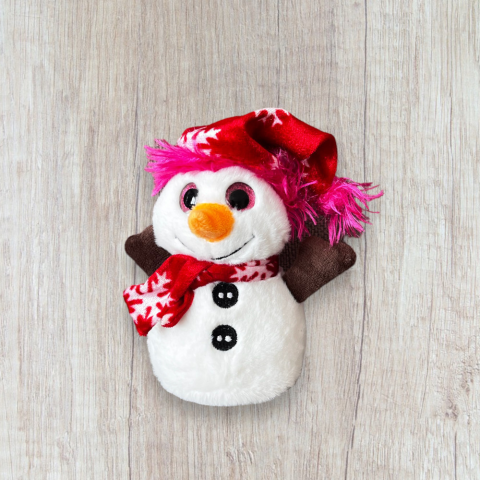 Hibátlan állapotú plüss hóember csillogó rózsaszín szemekkel Méret 15cm