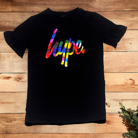 Ujja fodros, elején színátmenetes felirattal. Címke nélküli, vedd figyelembe a mért adatokat. mell:2x40cm hossz:58cm Hibátlan állapotú.