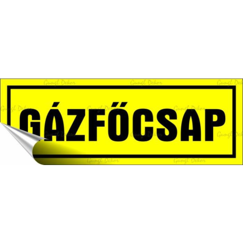 Információs matrica, 14x5 cm, Gázfőcsap Gázfőcsap információs matrica - anyaga: öntapadós műanyag fólia (vinil) - damil akasztót nem tartalmaz - sárga alapon fekete betűk - mérete: 14x5 cm