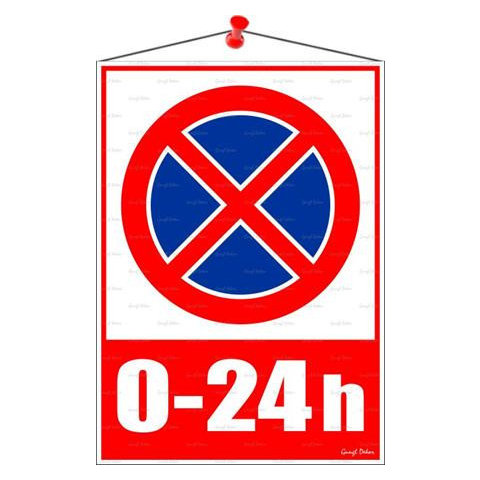 Információs tábla, 35x25 cm, 0-24h megállni tilos piktogram Megállni tilos 0-24 piktogram, információs tábla - anyaga: hullámos műanyaglemez, damil akasztóval - mérete: 35x25 cm